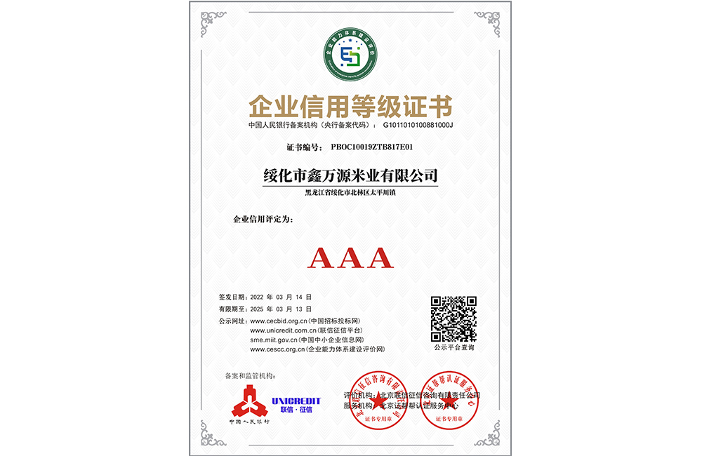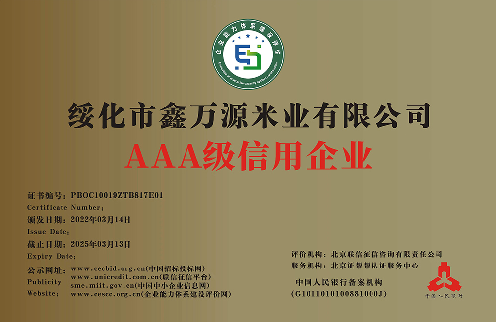 走進我們 ABOUT US 您現(xiàn)在的位置:網(wǎng)站首頁 > 走進我們 > 資質(zhì)榮譽 公司簡介 COMPANY PROFILE 領(lǐng)導(dǎo)致辭 CORPORATE CULTURE 資質(zhì)榮譽 HONORS 企業(yè)文化 HONORS 黑龍江省級重點龍頭企業(yè) 黑龍江省級重點龍頭企業(yè) 專精特新中小企業(yè)證書 食品安全、質(zhì)量管理體系認證證書 AAA級信用企業(yè):鑫萬源米業(yè) AAA級企業(yè)信用等級證書 共35條記錄 當(dāng)前為第6頁/共6頁上一頁1234...6下一頁